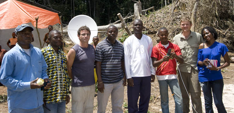 Part of the team visiting Lomako. The satellite dish is behind Jef.