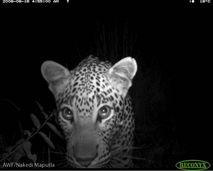 A leopard captured by one of the camera traps that got burnt.