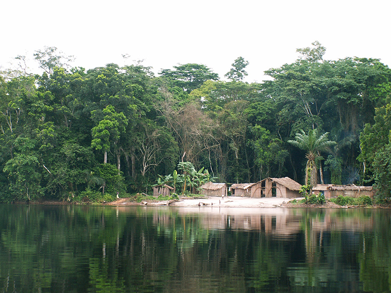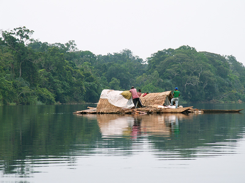 Floating hut on the DRC's Lomako River.