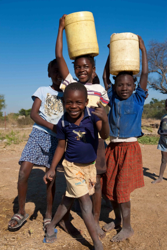 Local children collect water from one of the new outlets