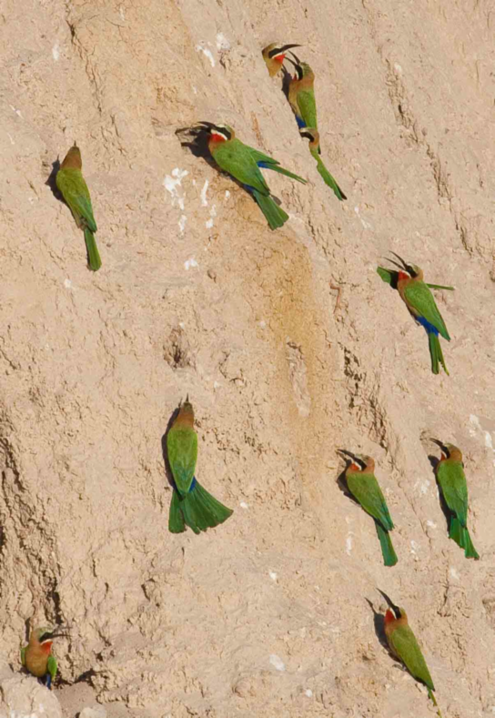 White Fronted Bee Eaters nesting in the large drainage pond.