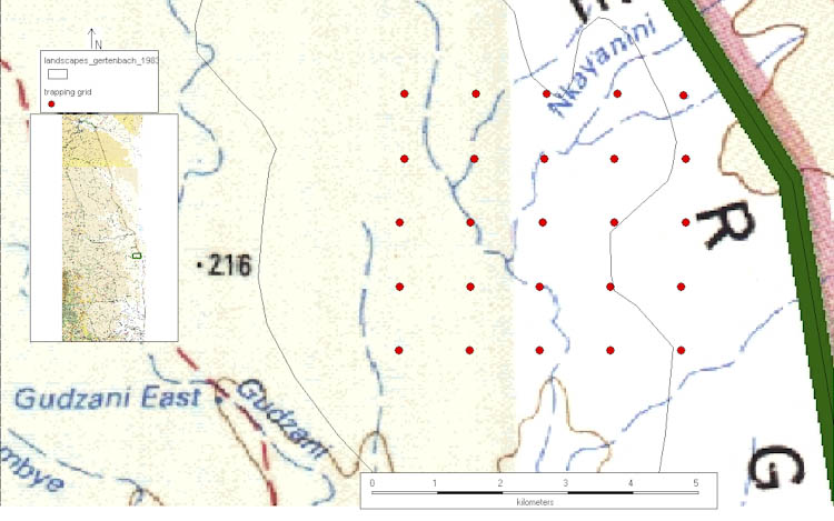 I managed to place the cameras in the form of 5 x 5 grid, which will allow us to see the random movements of the leopards. I placed the cameras at 1 kilometer apart.