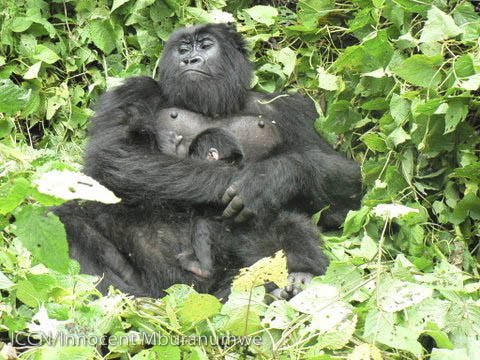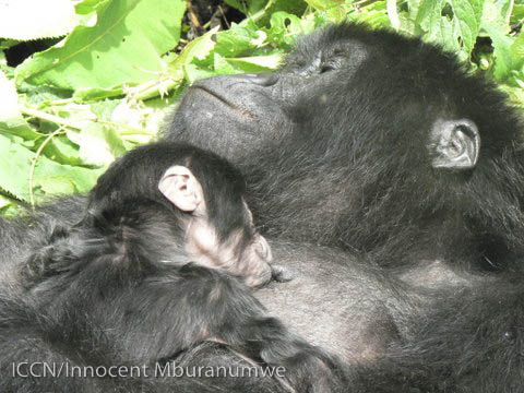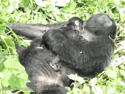 And not only Bonane: here was Gato as well, sleeping peacefully with her new baby. Two bundles of life! Park Ranger Innocent Mburanumwe captured the joy and contentment of a mother and her precious offspring with the skill of a professional photographer.