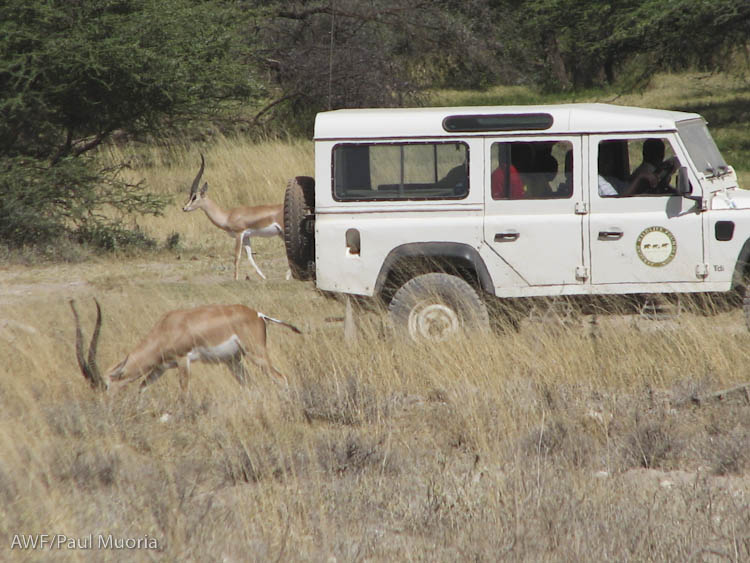 The Grevy’s zebra project car drives past some Grant’s gazelles. The students and teachers were surprised that wild animals were not running away. Back home, the wild animals would have taken off fast due to harassment and poaching, which our project has been documenting.