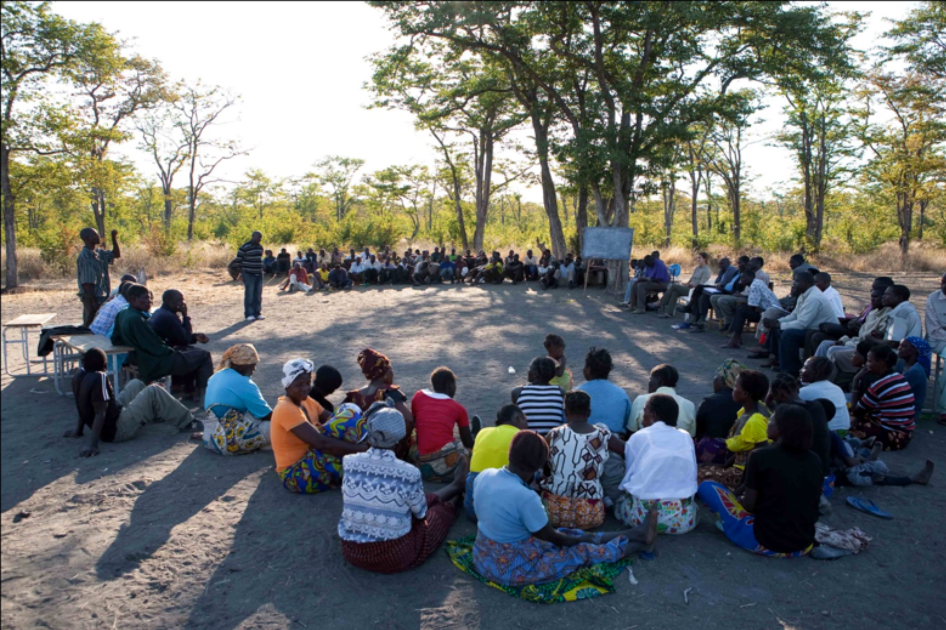 A representative from the Fisheries Department addresses members of the Sekute Conservation Area during the first meeting of its kind addressing issues of Conservation and natural resource management.