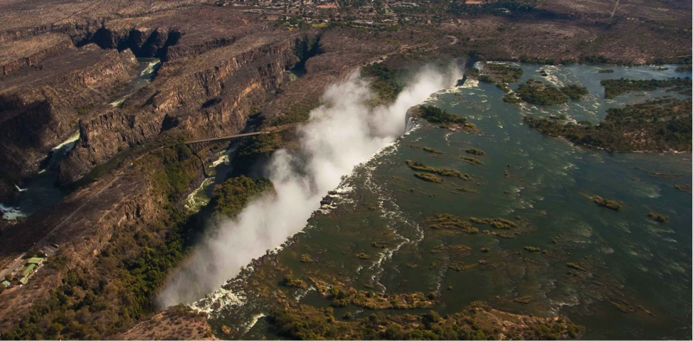 Mosi-Oa-Tunya was the original name of Victoria Falls, translating to “the smoke that thunders.” Flying towards the fall in the air, the “smoke” is actually water coming back up from the fall, and into the air, mimicking the clouds in the sky.