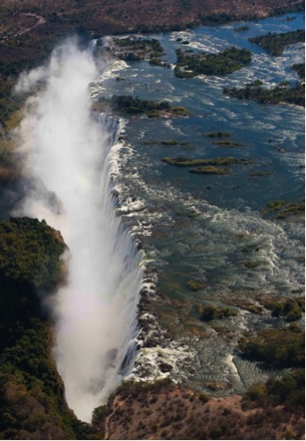 We approached the fall from above, on the same path that the Zambezi River takes as it pours out over the fall. The river then winds around the sharp bends below, snaking its way further into the landscape.