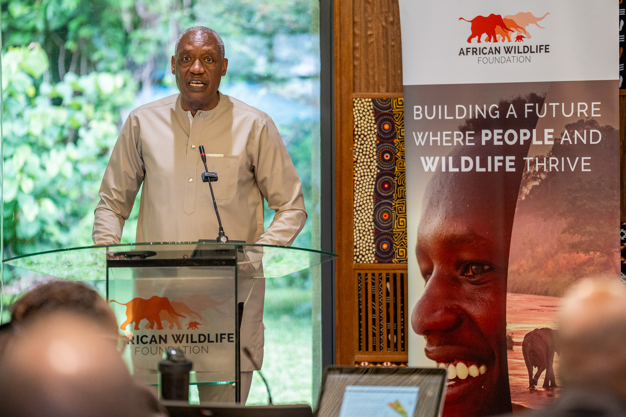 AWF CEO,Kaddu Sebunya shares his remarks during the GEF OFP Roundtable workshop at the AWF Headquarters in Nairobi, Kenya